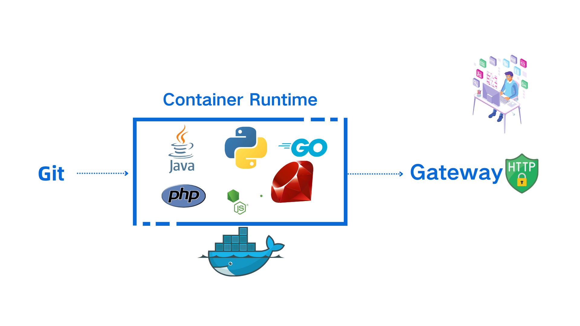 - A Nginx proxy block in Websoft9 Gateway, it proxy to language runtime container's 80 port